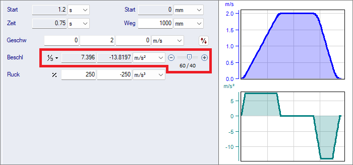 Hinweis: Durch die Rucklimitierung steigt das erforderliche Spitzendrehmoment des Motors an, was einen größeren Motor und Antrieb erforderlich machen kann.