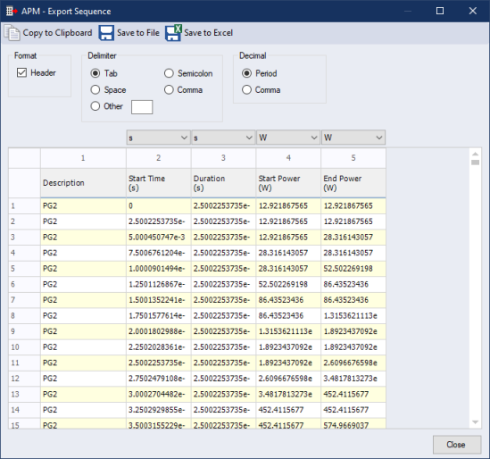 Export the Pressure and Flow Sequence for Pump applications. The "Pump A" and