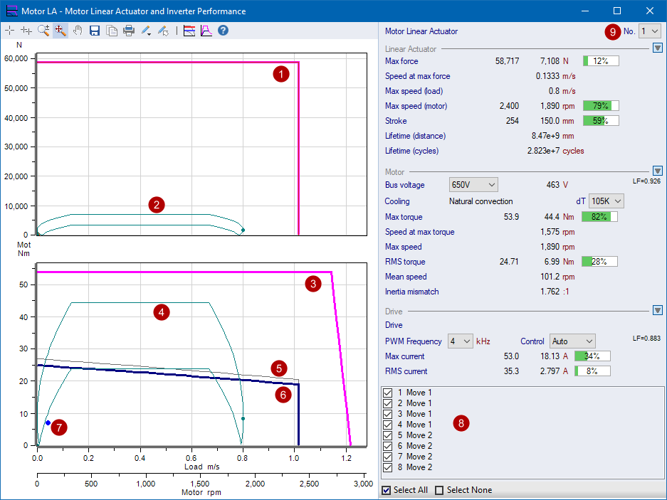 Motor rated continuous torque characteristic curve with the environment de-rating load factor (LF) |
